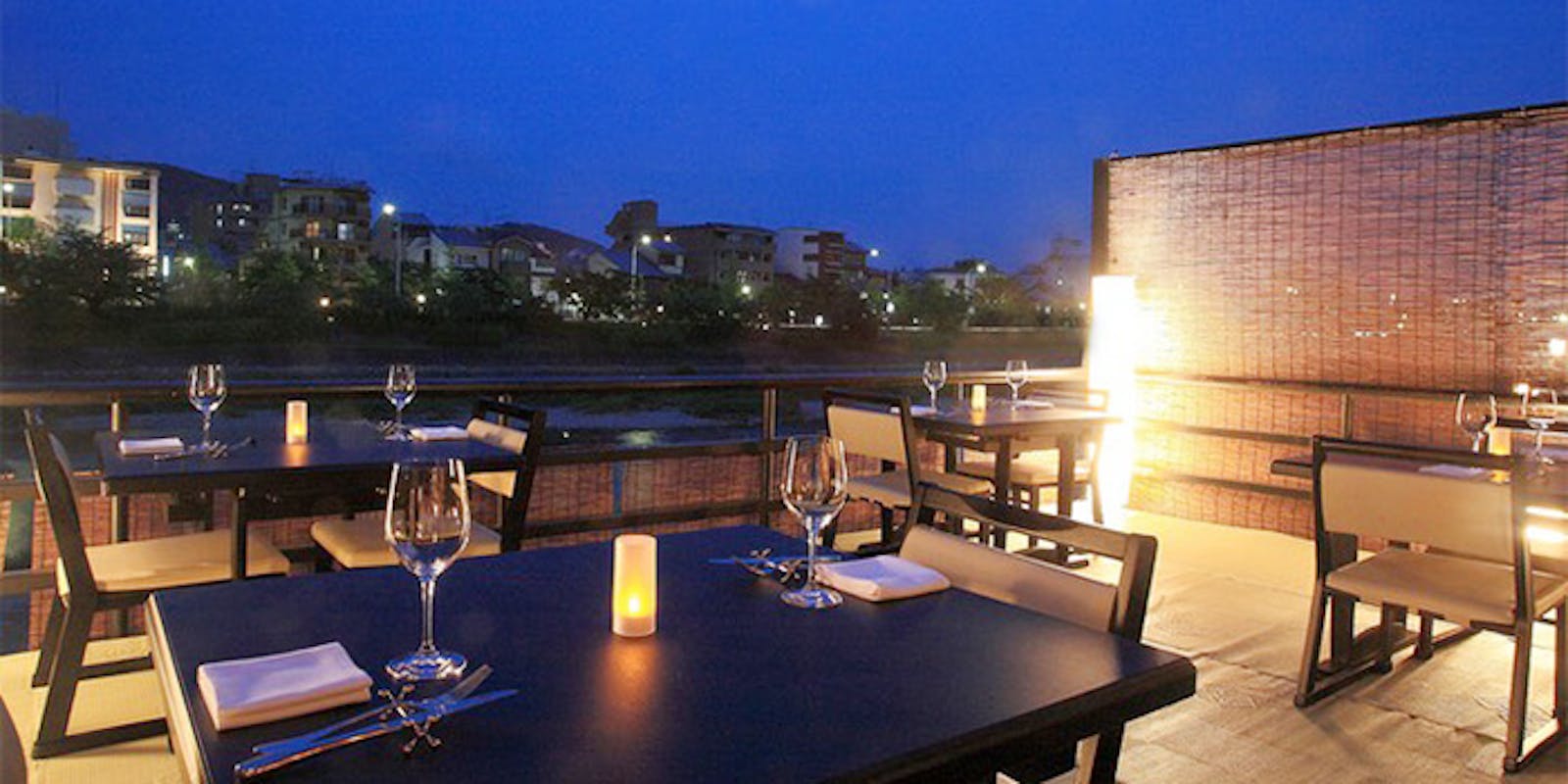 鴨川は市街地に近く、店舗数が多いため、カジュアルに楽しめる川床が魅力です。二条から五条の西岸にかけて設置される「鴨川川床」は、5月から9月末まで営業。夜には川床の提灯の明かりが灯り、鴨川沿いに等間隔に並ぶカップルがロマンチックな雰囲気を演出します。